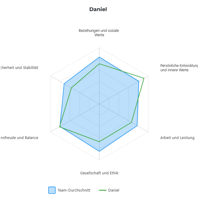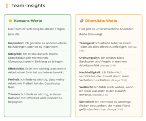Ebenso kann jeder Teilnehmende seine eigenen Werte mit den Werten des Teams vergleichen.