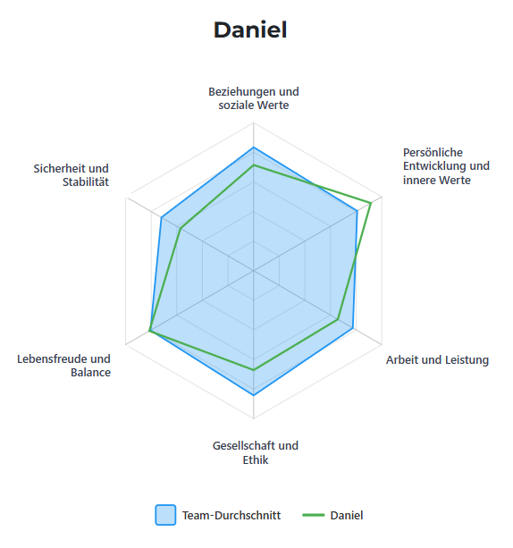 Ebenso können alle Teilnehmenden die eigenen Werte mit den Werten des Teams vergleichen.